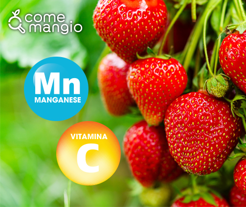 Una porzione da 100 grammi di fragole copre tra il 10 e 15% del fabbisogno giornaliero in manganese, minerale essenziale per la formazione delle ossa. Il colore rosso delle fragole deriva dagli antociani, molecole dotate di interessanti proprietà anti-ossidanti.