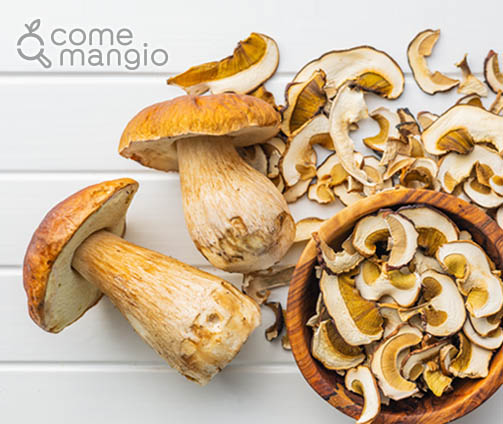 Funghi secchi: acqua ridotta al 13%, ma i nutrienti schizzano alle stelle — 282 kcal, il 40% di proteine e il 10% di fibre.