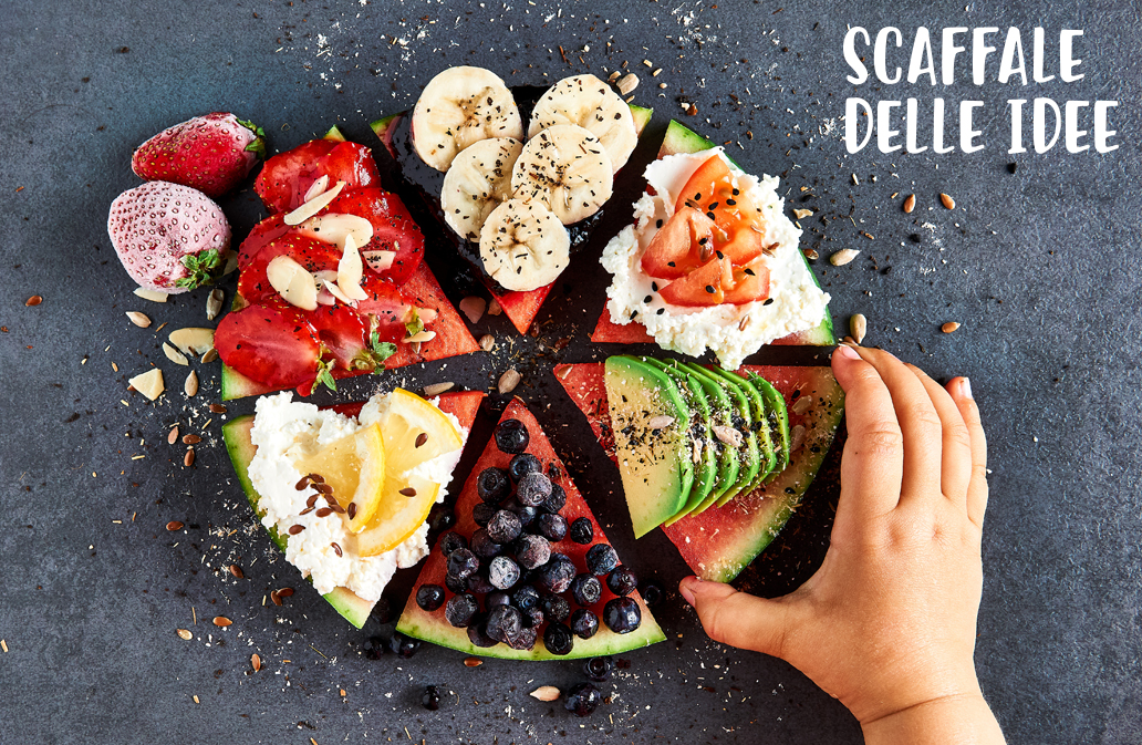 Basta una fetta tonda di anguria senza semi per creare una pizza sana e irresistibile. Tagliala a spicchi e decora ogni parte con abbinamenti semplici ma sorprendenti. Ogni spicchio è un piccolo gioco di sapori, colori e fantasia. Qualche esempio?