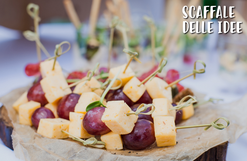 Scegli uva croccante e senza semi. Taglia gli altri ingredienti in cubetti o rondelle, alterna tutto su spiedini piccoli e conserva in frigo fino al momento di servire.