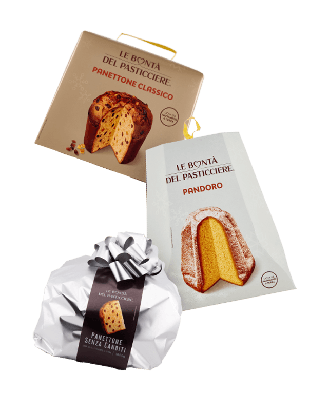Le Bontà del Pasticciere è il marchio dei dolci più amati delle festività: pandoro, panettone e colomba, con o senza canditi, tradizionali o al cioccolato. I prodotti sono proposti sia nel classico astuccio di cartone, sia nella versione incartata a mano.