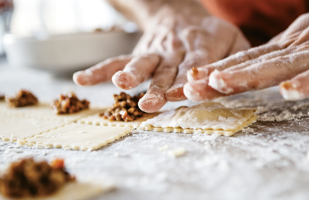 Verdure o pesce in Liguria, brasati in Piemonte, carne di maiale in Emilia-Romagna, zucca e menta a Mantova, ricotta e spinaci nel resto della Lombardia… Questi i ripieni classici, che nulla vieta di personalizzare con un tocco di colore nell’impasto che richiami visivamente il contenuto. Qualche esempio per stupire nei giorni di festa? Un po’ di nero di seppia nell’impasto dei ravioli di pesce, foglie di spinaci strizzate in quello che conterrà ripieni green, una punta di barbabietola o concentrato di pomodoro per gli scrigni a base di carne, un tocco di zafferano se dentro c’è la zucca.