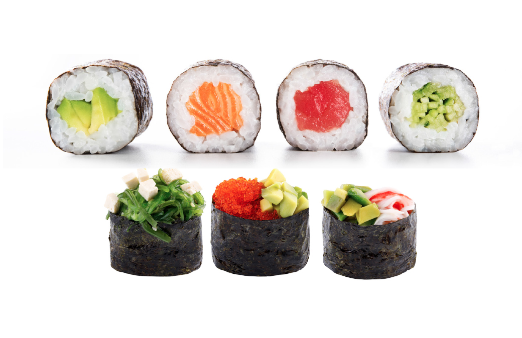 • HOSOMAKI I classici rotolini di pesce (di un solo tipo!) e riso avvolti in un foglio di alga nori e poi tagliati in cilindri di piccole dimensioni.