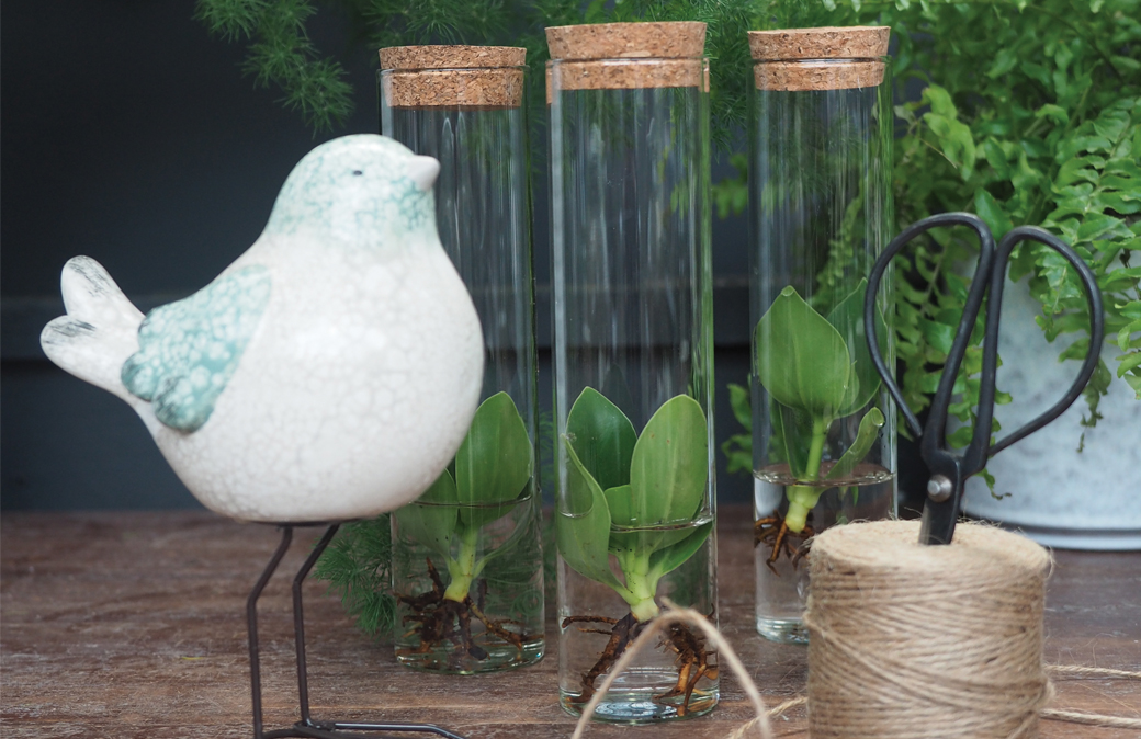 Coltivare in idrocoltura una pianta già cresciuta si rivela un’ottima soluzione se siete in partenza per le vacanze e non avete un sistema di irrigazione (o qualcuno che vi bagni le piante!). Ma può essere anche una soluzione per valorizzare un bel vaso di vetro trasparente.