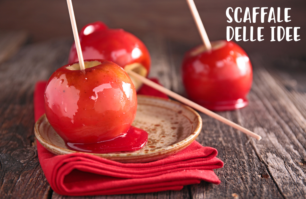 Per 4 persone. Lava 4 mele con acqua calda e strofinale con un panno pulito. Asciugale bene, rimuovi il picciolo e inserisci a fondo, al suo posto, uno spiedino di legno. Metti le mele in frigorifero.