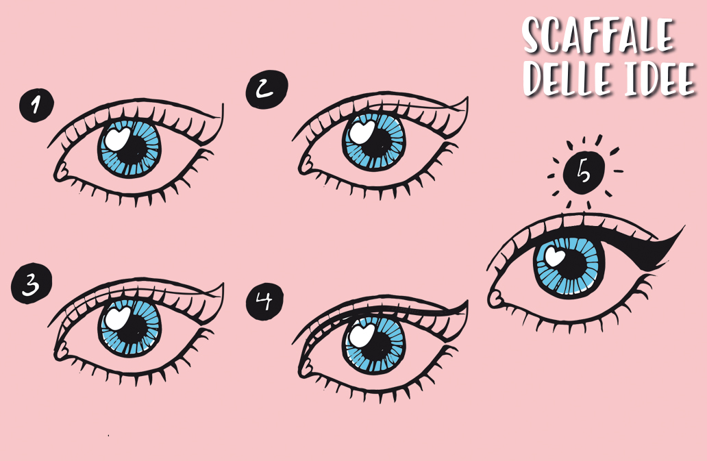 4) Riempi di colore: con tratti sottili, colora lo spazio tra le due lineette nella metà della palpebra verso l’angolo interno dell’occhio.