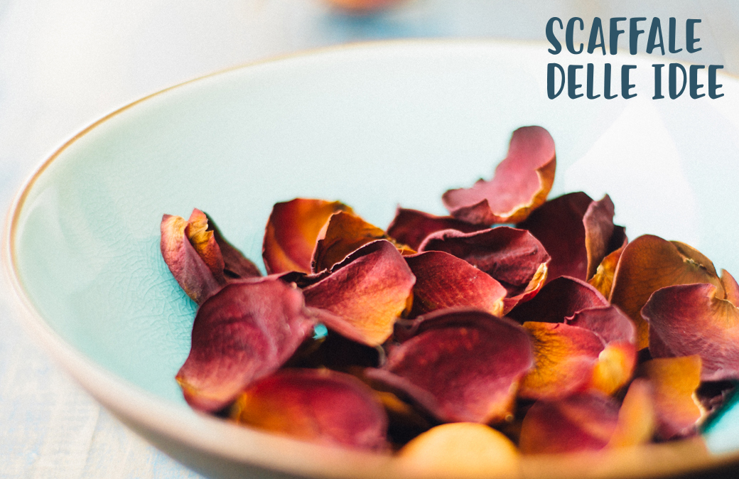 Disponi i petali di una dozzina di rose su un vassoio coperto di carta di giornale, fai asciugare per 3 giorni in un luogo caldo e asciutto. Quando i petali iniziano ad accartocciarsi, versali in un barattolo a tenuta ermetica e aggiungi 1/2 cucchiaino di cannella in polvere e 1/2 cucchiaino di lavanda essiccata. Chiudi il barattolo e shakera per mescolare. Completa con 10 gocce di olio essenziale di rosa. Chiudi, shakera e lascia riposare per 1 settimana prima di aprirlo.