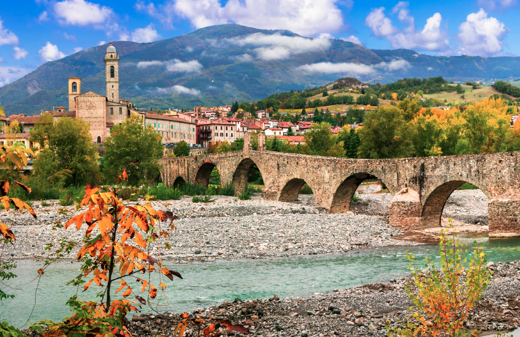 Autentiche icone del borgo sono l’Abbazia di san Colombano, nel cuore del centro storico, e il singolarissimo Ponte Gobbo, con le sue undici arcate asimmetriche e l’andamento sinuoso sul greto del Trebbia (anzi, della Trebbia, al femminile, come dicono qui). Nei locali dell’ex monastero sono stati ricavati due spazi culturali: il Museo dell’Abbazia e il Museo Collezione Mazzolini. Il primo conserva importanti pezzi dall’antichità al Rinascimento tra cui il vaso d’avorio con Orfeo che ammansisce gli animali. Il secondo ha quadri e sculture di arte moderna con nomi da De Chirico la De Pisis, Fontana, Pomodoro e altri. Visitabili su prenotazione mediante Cooltour (www.cooltour.it).
