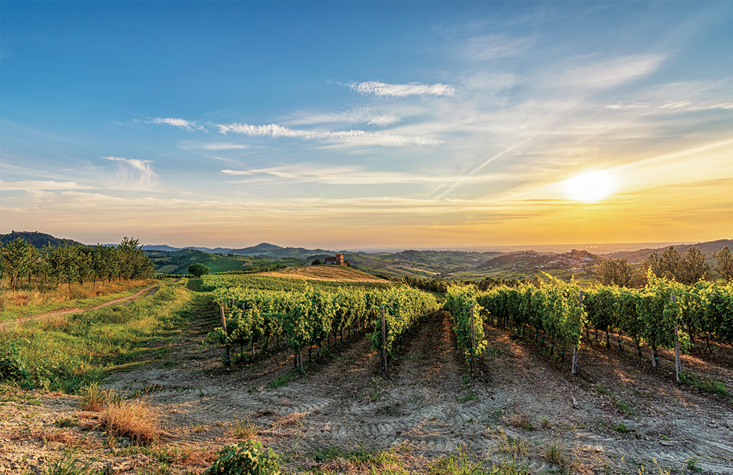 di grappolo d’uva» scriveva il grande giornalista Gianni Brera, che sottolineava così la secolare vocazione di questo triangolo lombardo incuneato tra il Monferrato piemontese e la piacentina Val Trebbia.