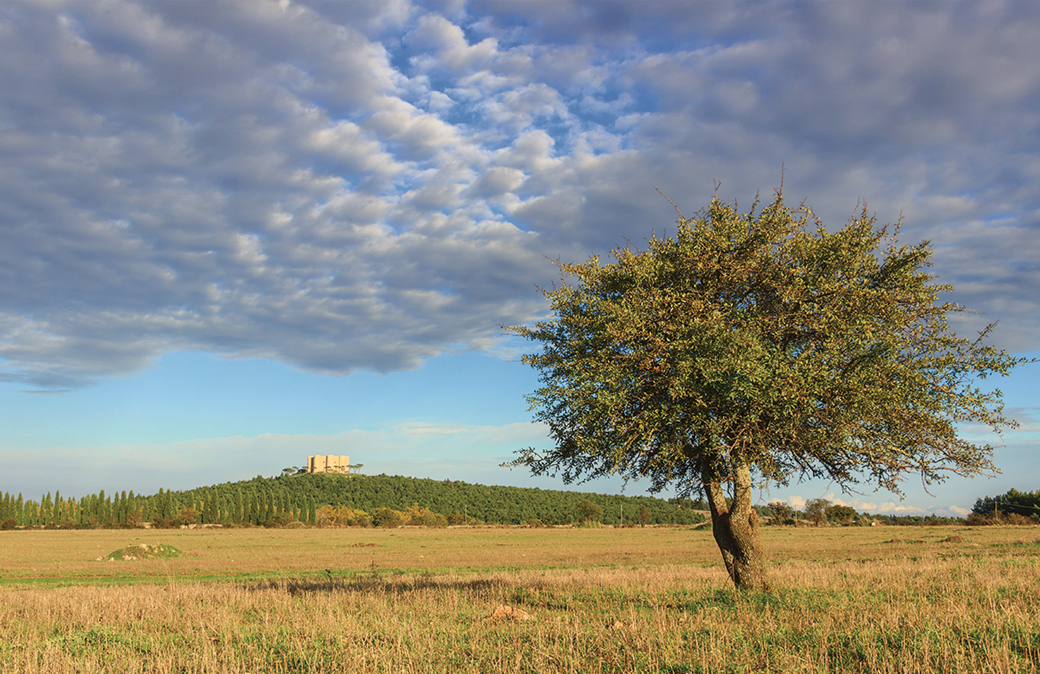 La Puglia che non ti aspetti si chiama Alta Murgia, ossia quel sistema collinare al centro della regione che segue parallelo la costa, diventato nel 2004 Parco Nazionale per meglio tutelare le sue peculiarità paesaggistiche nonché la flora, la fauna e le tradizioni gastronomiche. Comprende territori della città metropolitana di Bari, della provincia di Barletta-Andria-Trani e della provincia di Taranto. Fulcro della Murgia è uno degli edifici più singolari, enigmatici e belli dell’intero paese. Un edificio a pianta ottagonale che dal 2002 ci portiamo in tasca, impresso sul rovescio delle monete da 1 centesimo di euro: Castel del Monte. Enigmatico a cominciare dalla sua funzione. Non è una fortezza, né una residenza di corte. Non un padiglione da caccia né una stazione di posta. Probabilmente è tutto ciò e molto altro: osservatorio astronomico, simbolo del potere temporale e di quello spirituale, ricetto di cultura ed espressione di un sapere simbolico. In ogni caso la suggestione che questo unicum esercita anche sul visitatore del terzo millennio è straordinaria (info, tel. 3279805551 casteldelmonte.