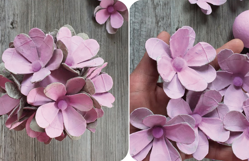 Per realizzare questo festone luminoso, bisogna ritagliare dal portauovo tanti incavi, modellando con le dita i 4 angoli in modo che prendano la forma di petali.