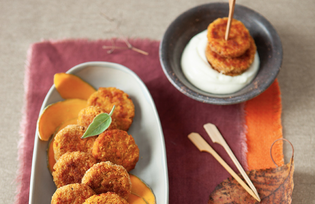Togliere il composto dal frigorifero, inumidire leggermente le mani e formare con l’impasto delle palline di circa 4 cm di diametro, schiacciarle leggermente, spolverizzarle con altro pangrattato, disporle su una teglia rivestita con carta da forno. Irrorare con un filo d’olio, cuocere per 15/20 minuti in forno caldo a 200°. Servire calde, accompagnandole a piacere con yogurt greco oppure con della senape.