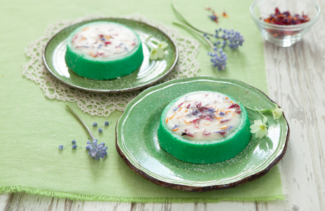 Lavorare lo zucchero a velo con un frustino, versare a filo l’acqua per ottenere una glassa, incorporare delicatamente i fiori essiccati. Stendere la glassa sulla superficie delle cassatine con l’aiuto di una spatola o con il dorso di un cucchiaio.