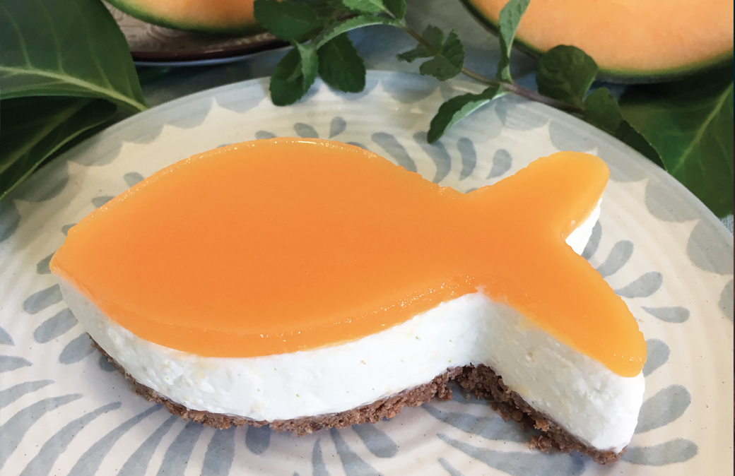 Versare il composto sul fondo di biscotti, livellare bene con una spatola e lasciare rassodare in frigo per almeno 4 ore. Mettere la gelatina in ammollo in acqua fredda, per 10 minuti circa. Tagliare il melone a tocchetti e metterlo in un pentolino con lo zucchero. Fare cuocere il tempo necessario ad ammorbidire il melone. Frullare il tutto con un frullatore a immersione, lasciare intiepidire e aggiungere la gelatina strizzata. Amalgamare bene, fino a far sciogliere la gelatina, versare il composto di melone sulla crema e riporre la cheesecake in frigorifero per altre 5 ore circa.