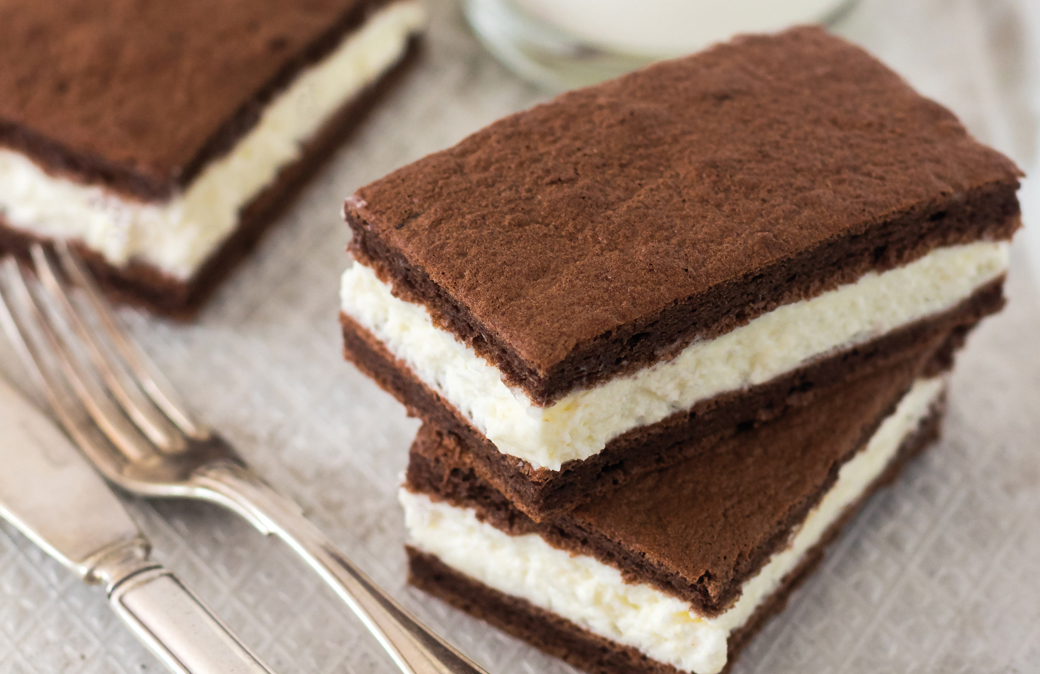 Preparare la pasta biscotto montando per circa 15 minuti le uova con lo zucchero, aggiungere il latte e poco per volta la farina con il cacao, precedentemente setacciati. Mescolare sempre dal basso verso l’alto per non smontare il composto. Versarlo su una teglia rivestita di carta forno, pareggiare con un cucchiaio e cuocere in forno caldo a 220° per 6-7 minuti.2