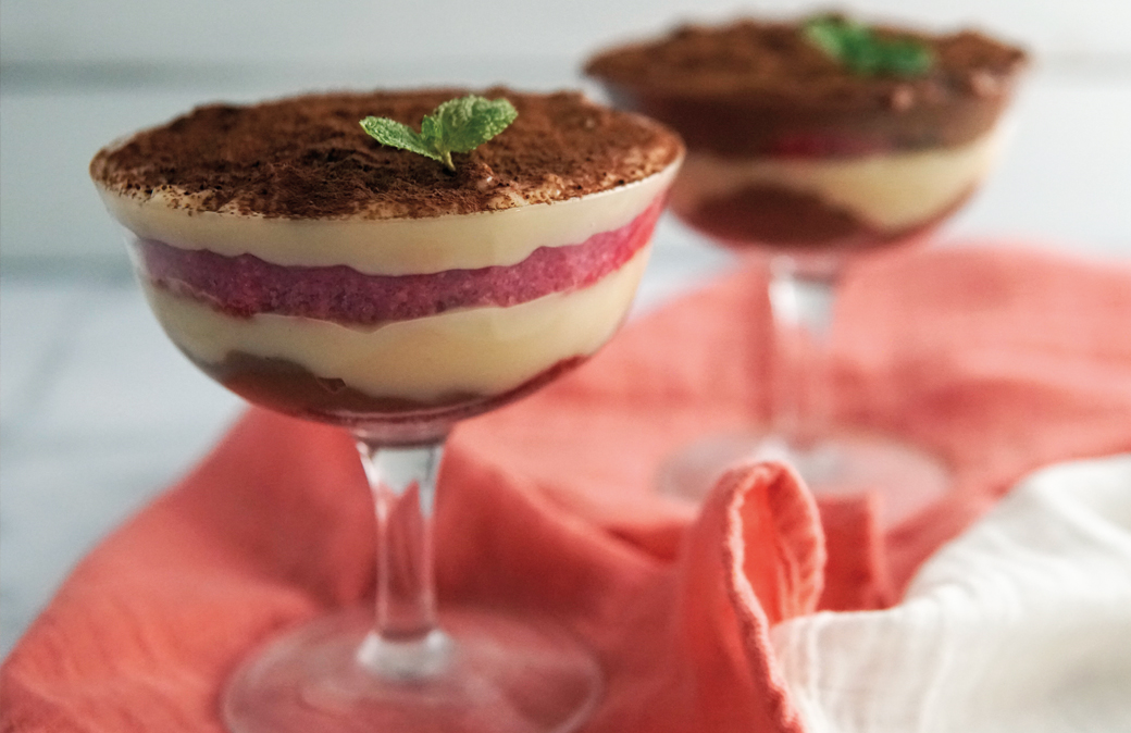 In un contenitore spezzettare il cioccolato, versare poco meno della metà della crema pasticcera calda e mescolare velocemente fino a che il cioccolato sarà completamente sciolto. Coprire entrambe le creme con la pellicola per alimenti a contatto della superficie, per evitare che si creino la “pellicina”, e lasciare raffreddare a temperatura ambiente. Versare l’alchermes in una ciotolina e man mano inzuppare i dischi di Pan di Spagna. In ciascun bicchiere, creare un primo strato di Pan di Spagna, versare prima una crema e poi l’altra e ripetere il procedimento. Guarnire a piacimento.