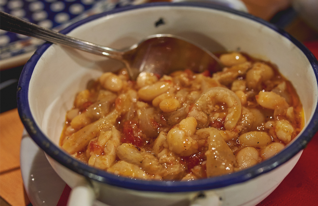 Raggiunta la rosolatura, unire la conserva di pomodoro, allungare il sugo con l’acqua dei fagioli in modo da coprire le cotenne. Continuare la bollitura, sempre adagio, per circa due ore. Quando le cotenne sono cotte, aggiungere i fagioli. Lasciare insaporire l’insieme, mescolando e unendo il grana.