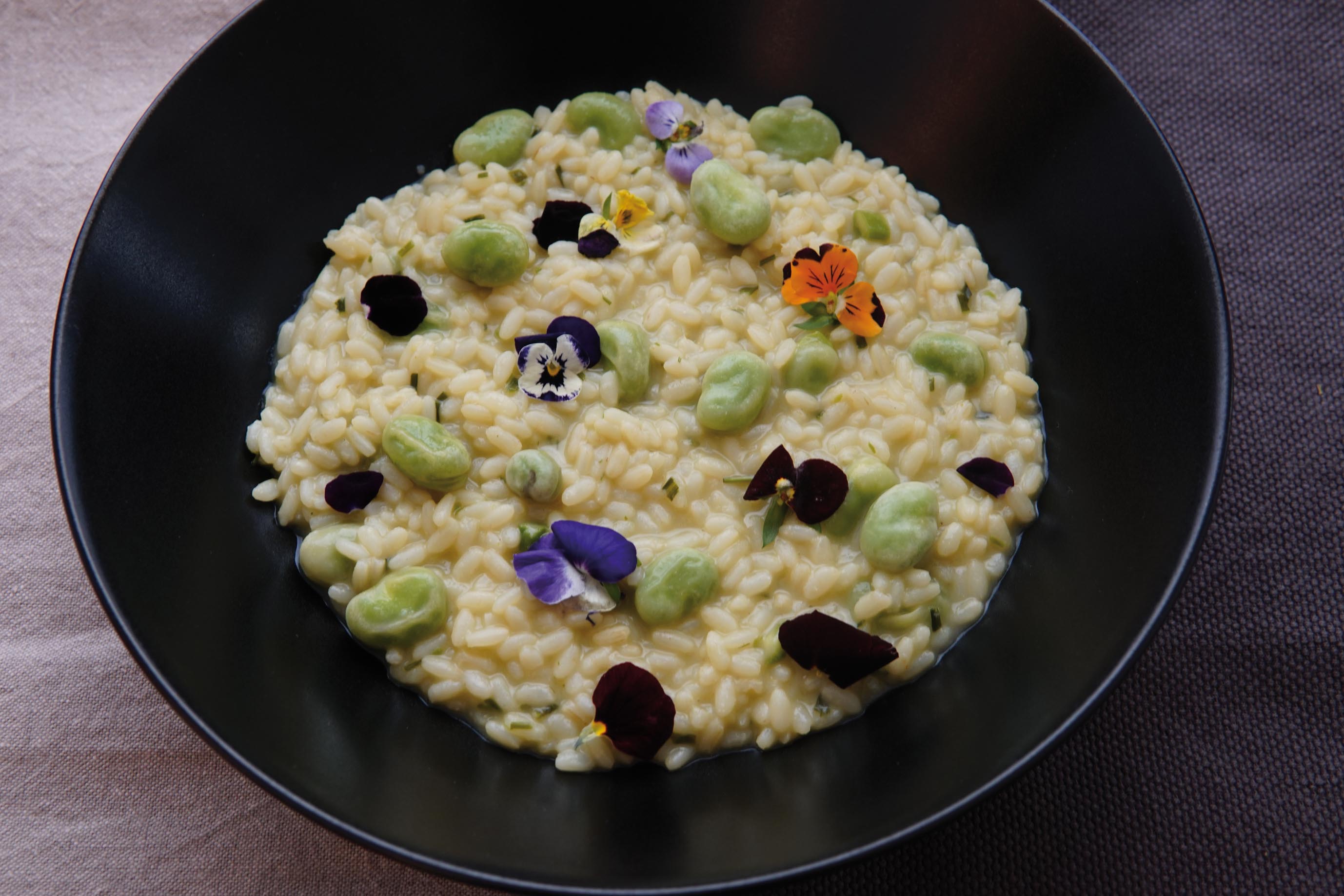 Poco prima che il riso arrivi a cottura, aggiungere il primosale tagliato a dadini piccolissimi e le fave.4