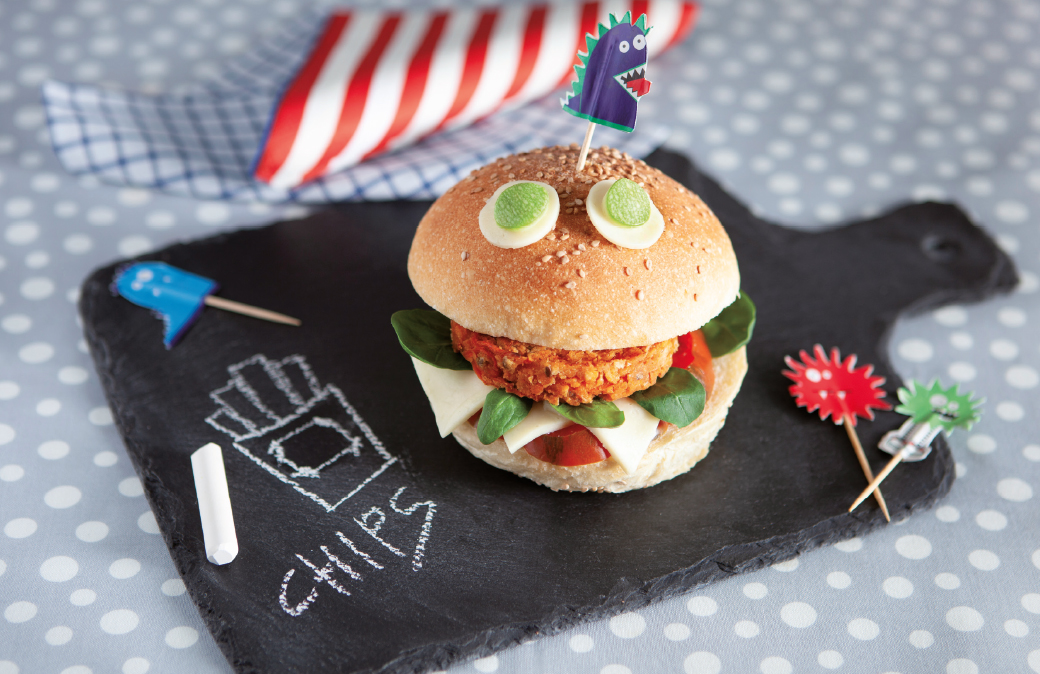 Tagliare a metà i panini, spalmare la maionese, lavare e affettate i pomodori, preparare l’insalata. Scaldare nuovamente la padella, cuocere qualche minuto per lato i burger vegetali, lasciarli dorare. Trasferire i burger nei panini, completare a piacere con insalata, pomodori o altro, richiudere e servire.