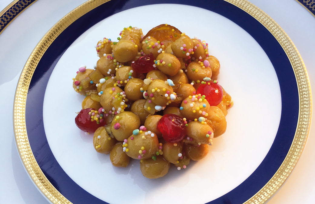 Staccando un pezzo di impasto alla volta, ricavarne con le mani dei cilindretti, quindi tagliarli con un coltello in piccoli pezzetti da circa mezzo centimetro. Riscaldare l’olio in un pentolino e quando “sfrigola” immergere gli struffoli e friggerli fino a che siano dorati. Scolarli con un mestolo forato e porli sulla carta assorbente.3
