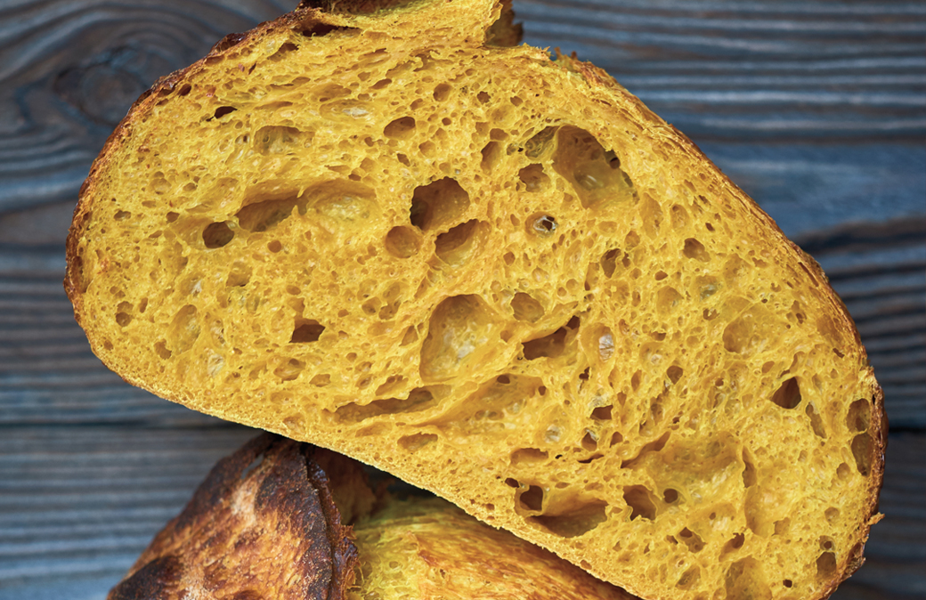 Sbriciolare e sciogliere il lievito in mezzo litro di acqua tiepida. Versare a fontana la farina. Unire l’acqua con il lievito, quindi incorporare il malto, lo zafferano, 20 g di sale. Aggiungere 70 g di olio e lavorare l’impasto fino a formare un panetto, ungerlo con il restante olio e porlo in una ciotola. Coprire con pellicola e lasciare riposare 40 minuti.2