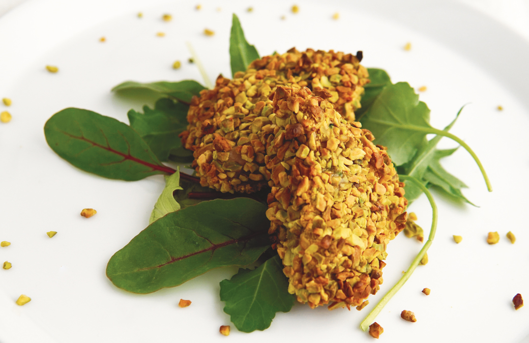 Mescolare in un piatto fondo la granella di pistacchi, quella di mandorle e il pangrattato.2